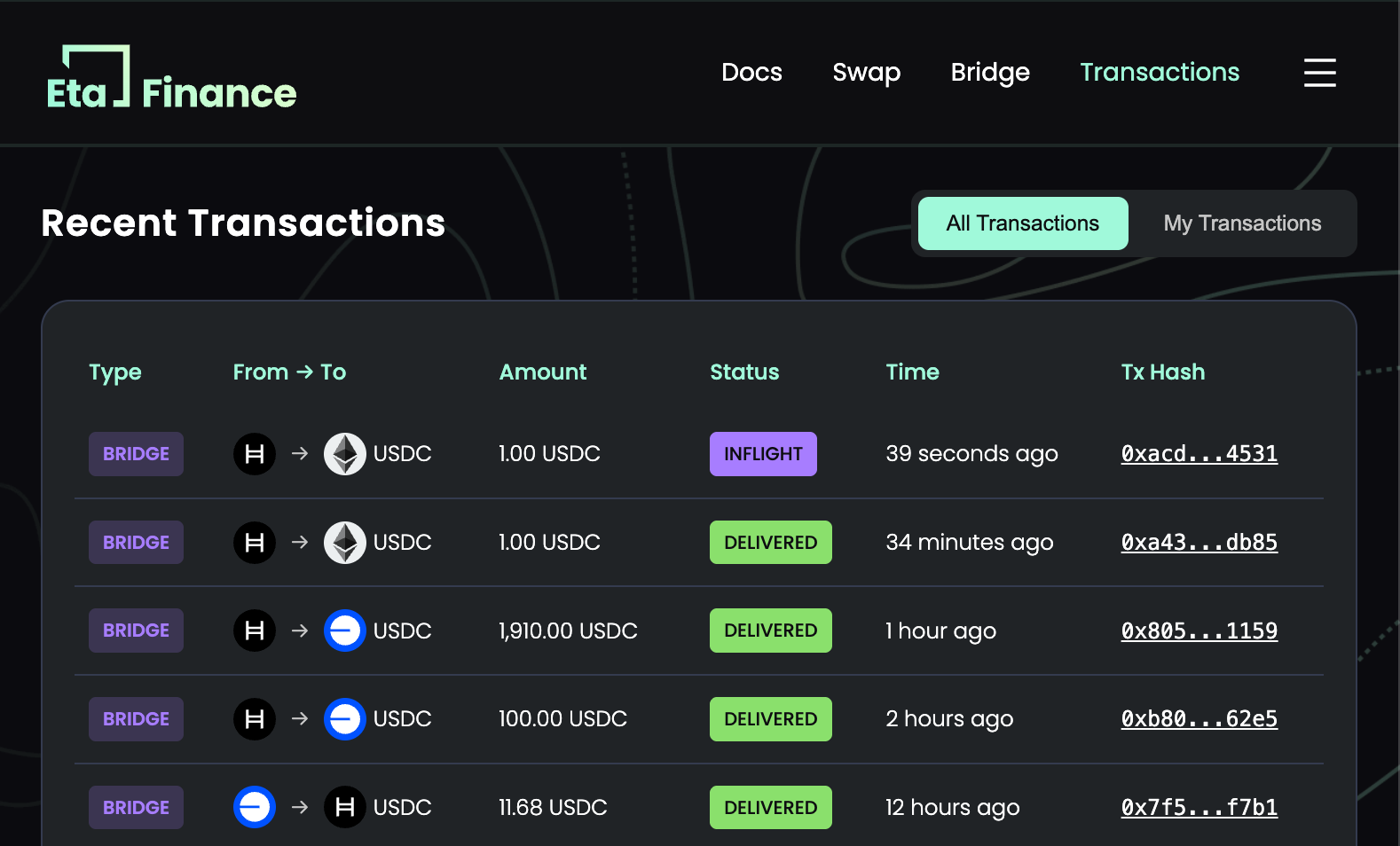 - Open https://eta.finance/bridge